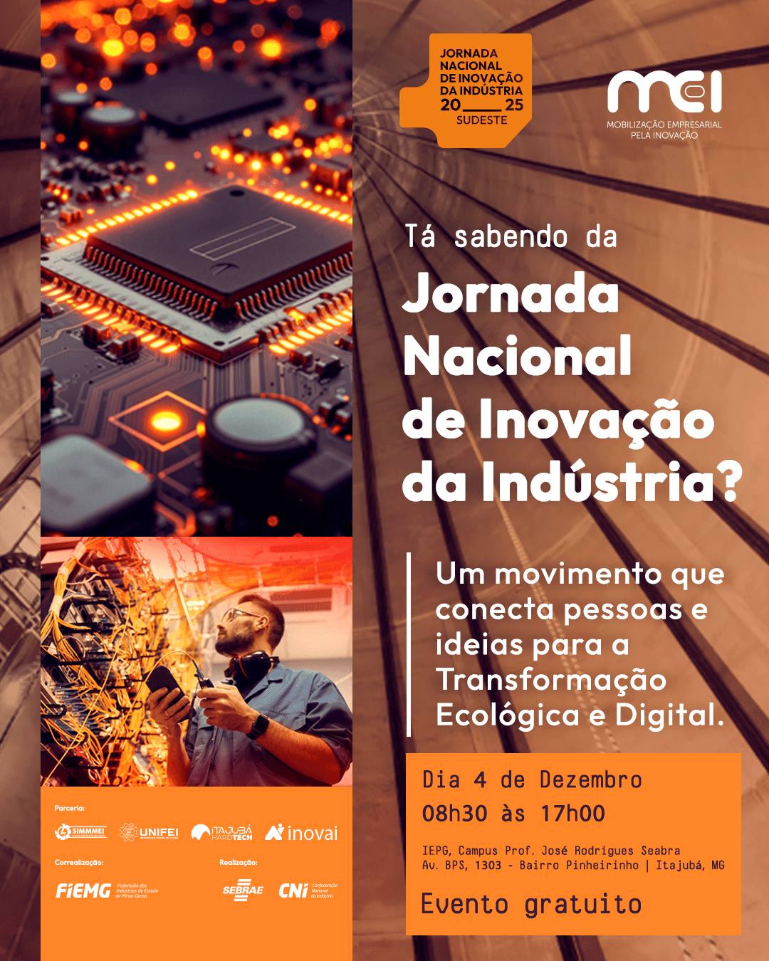 📅 Data: 04/12/2025 🕗 Horário: 08h30 às 17h 📍 Local: Universidade Federal de Itajubá – UNIFEI /Instituto de Engenharia de Produção e Gestão (IEPG)Endereço: IEPG, Campus Prof. José Rodrigues Seabra